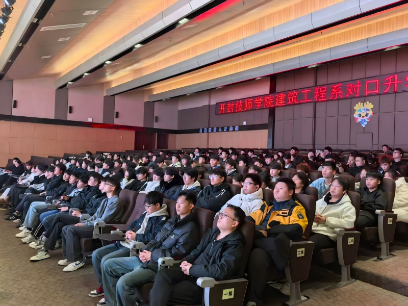 秋意渐浓,筑梦当时。11月10日下午,开封技师学院建筑工程系23级全体学生在五楼报告厅齐聚一堂,共同参加这场及时而重要的对口升学报考政策专题宣讲会。室外阳光正好,厅内学子们目光如炬,满怀期待地迎接这场为梦想护航的指导盛会。