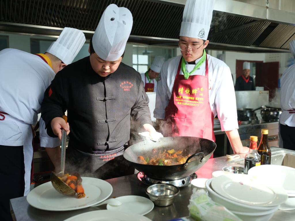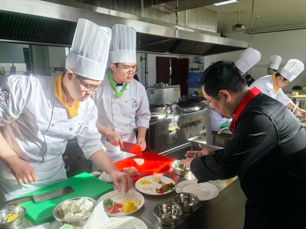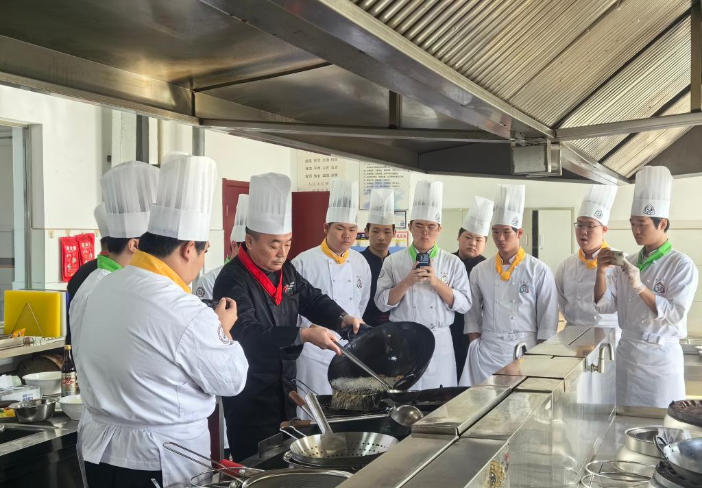 上课期间,教室内始终洋溢着积极而有活力的氛围。灶台前,我院烹饪专业的教师们耐心讲解、亲身示范,将每一道菜的选料、刀工、火候、调味等精髓倾囊相授。力求在有限的时间内,向韩国师生立体展示中华烹饪文化的博大精深与独特魅力。