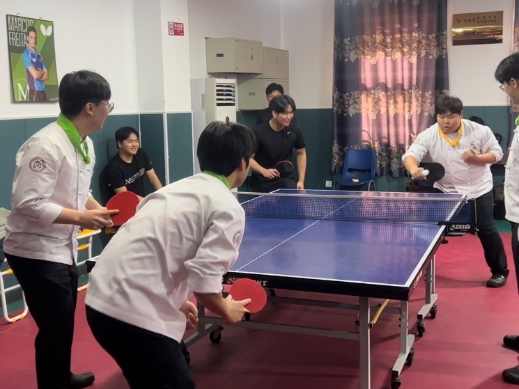 除了学习烹饪,还安排了丰富多彩的中国文化体验活动。在墨香四溢的书法教室,执起毛笔,感悟中国汉字横竖撇捺的艺术之美;在活力四射的乒乓球馆,握紧球拍,感受银球飞舞间的速度与力量。让韩国学生们得以从多维度、沉浸式地感知中国传统文化的魅力。