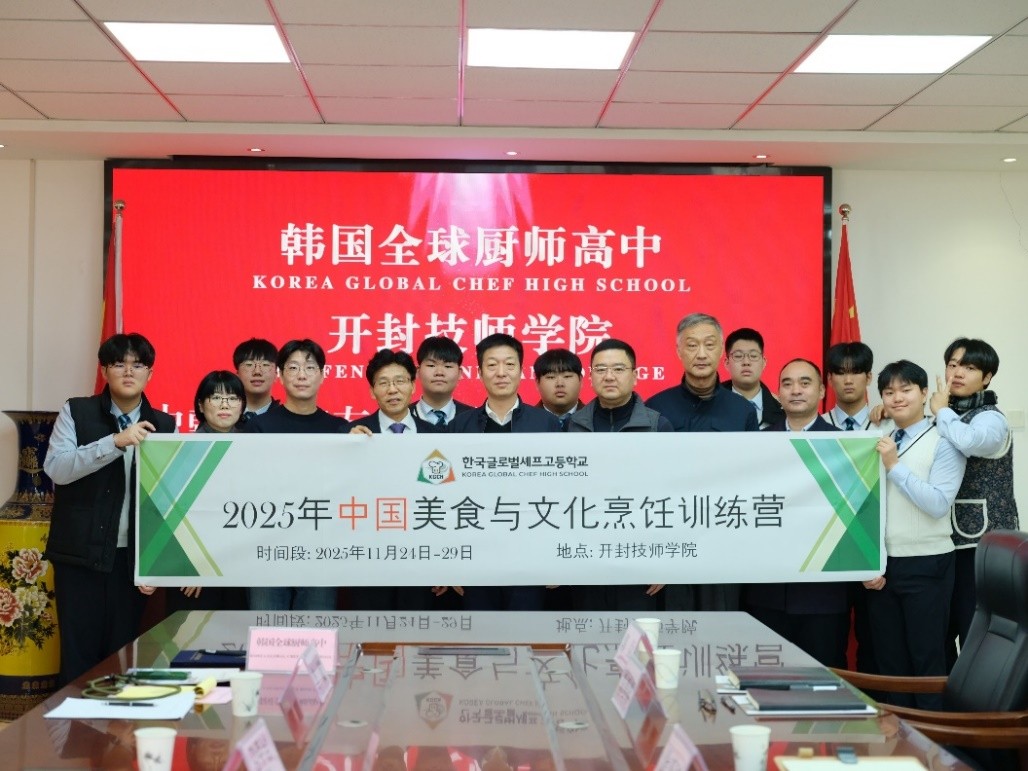 近日,开封技师学院与韩国全球厨师高中《中韩MOU友好交流合作备忘录》签订仪式在开封技师学院隆重举行。韩国全球厨师高中对外合作部部长金周南一行与开封技师学院院长涂天鸿、副院长马震及两校师生代表出席签订仪式。