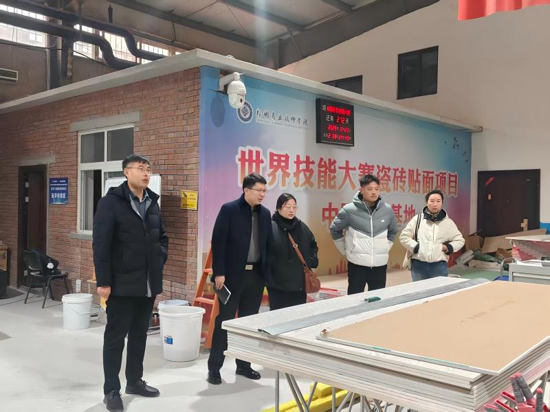 调研实地参观了镶贴瓷砖世赛试训基地,就特色专业教学改革、师资建设等问题深入探讨。鄢翔表示,将借鉴先进经验优化本校人才培养方案,推动教育教学质量提升。