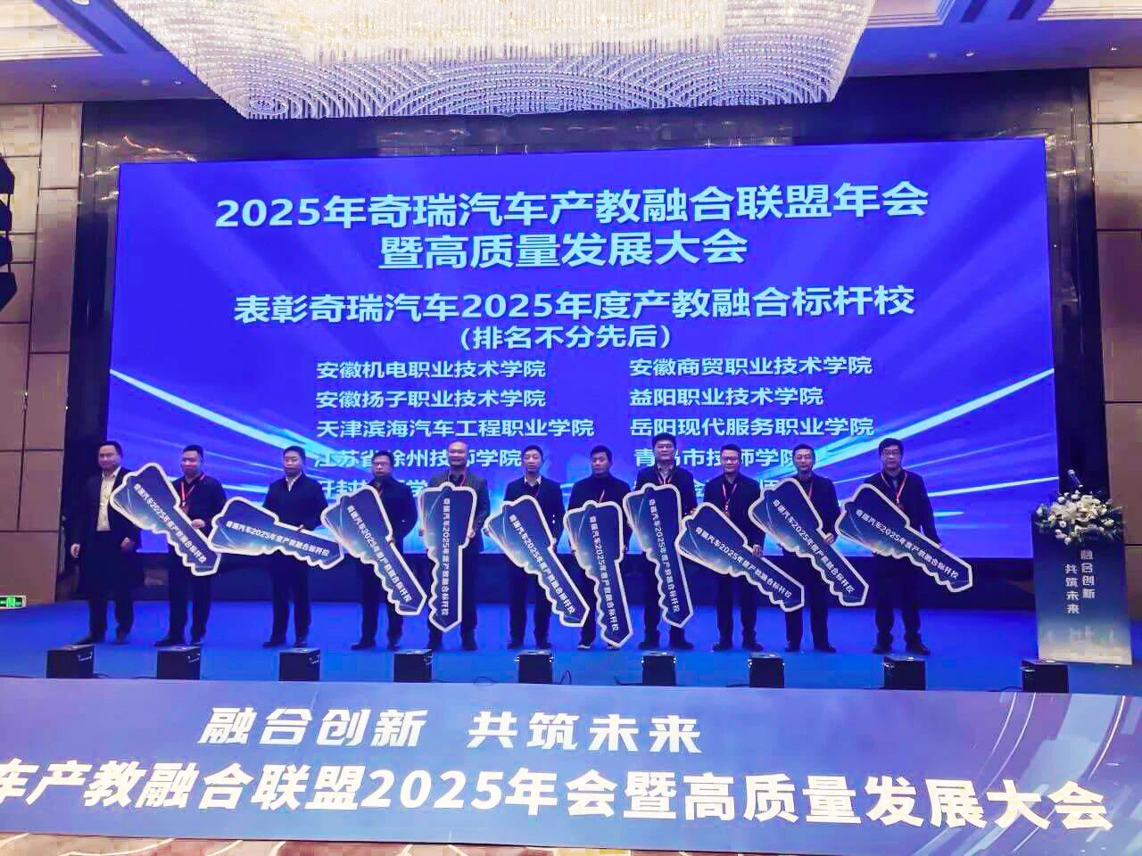开封技师学院获评奇瑞汽车2025年度产教融合标杆院校2026年2月7日,奇瑞汽车产教融合联盟2025年会暨高质量发展大会在安徽芜湖隆重举行。本次大会全面总结联盟2025年度工作成效,部署2026年度核心任务,聚焦深化产教融合、校企协同、科研协同,持续提升联盟服务产业升级与职教改革的核心效能。