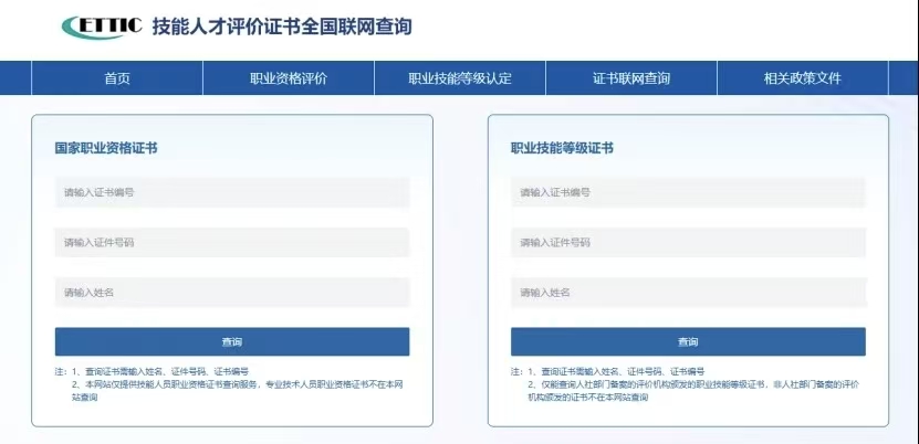 证书信息查询网址:http://zscx.osta.org.cn/(技能人才评价证书全国联网查询系统)
