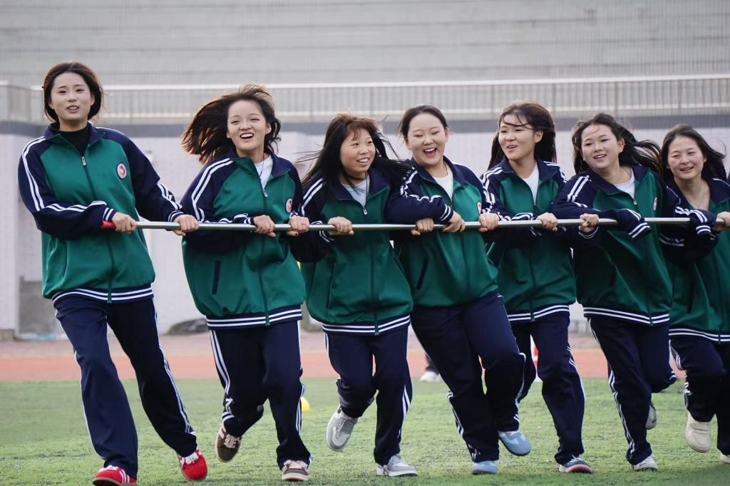 “一二、一二!” 同学们喊着口号调整步伐,有的刚起步因步伐不一致差点绊倒,互相搀扶着重新出发。