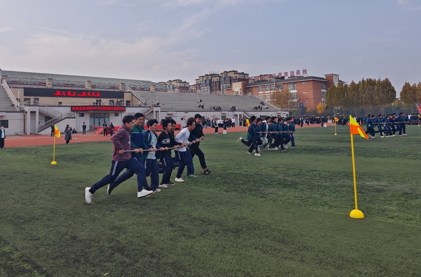 为丰富同学们的课余生活,缓解学习压力,增强团队凝聚力,同时引导大家以更积极的心态面对日常学习和生活,11月12日开封技师学院第四届心理趣味运动会系列活动在田径场拉开序幕,第一周活动以“无敌旋风跑”为比赛项目,吸引了2025级60个班级踊跃参与。